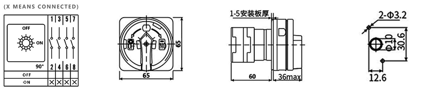 Hogar / Producto / Interruptor de cámara / Interruptor de desconexión trifásico tipo leva de cuatro cables ZHUCO LW42B32-1016/LF101-C11
