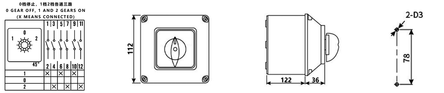 Hogar / Producto / Interruptor de cambio universal / Interruptor encerrado / ZHUCO SZW26-32/D303.BF 1-0-2 Interruptor de cambio de tres secciones y 3 posiciones con caja protectora