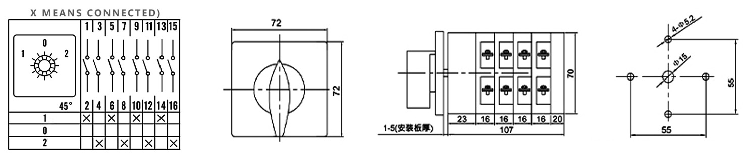 Hogar / Producto / Interruptor de cambio universal / Interruptor de control de potencia LW5D / Interruptor de cambio de tres posiciones y cuatro secciones ZHUCO LW5D-16/D1050.4
