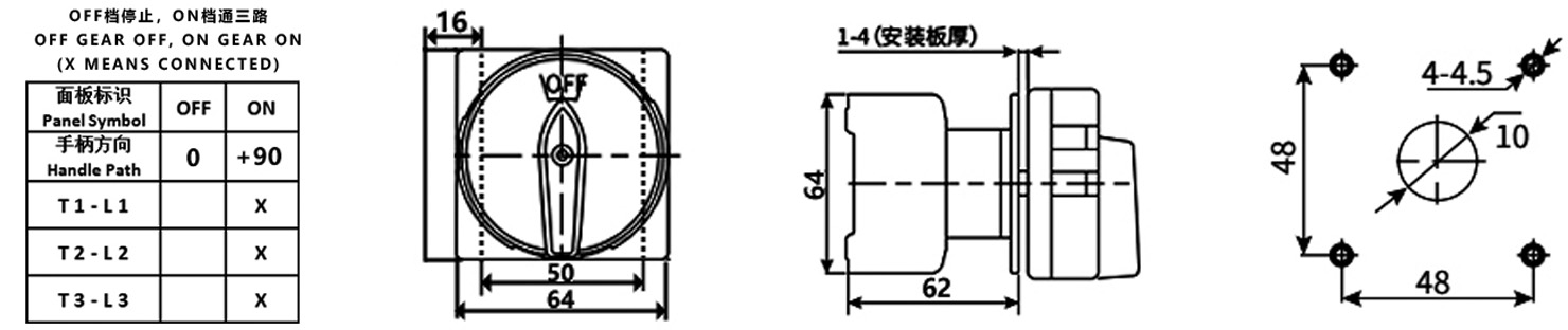 Método de instalación: Montaje en panel, fácil de instalar y operar en gabinetes de control, puertas de cajas de distribución o superficies de equipos.