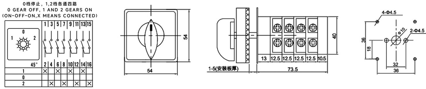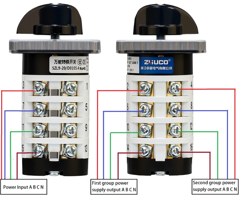 Hogar / Producto / Interruptor de cambio universal / Interruptor de cambio de potencia multifunción SZL9 / Interruptor de cambio ZHUCO SZL9-20/D1050.4 20A/4P de cuatro polos y tres posiciones 102