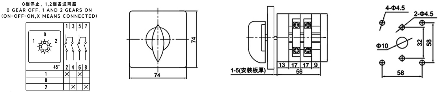 Hogar / Producto / Interruptor de cambio universal / Interruptor de cambio de potencia multifunción SZL9 / Interruptor de cambio ZHUCO SZL9-32/D0414.2 32A/2P de dos polos y tres posiciones 102