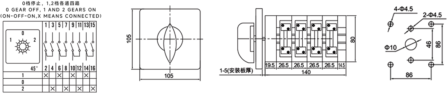 Hogar / Producto / Interruptor de cambio universal / Interruptor de cambio de potencia multifunción SZL9 / Interruptor de cambio ZHUCO SZL9-75/D1050.4 75A/4P de cuatro secciones y tres posiciones 102