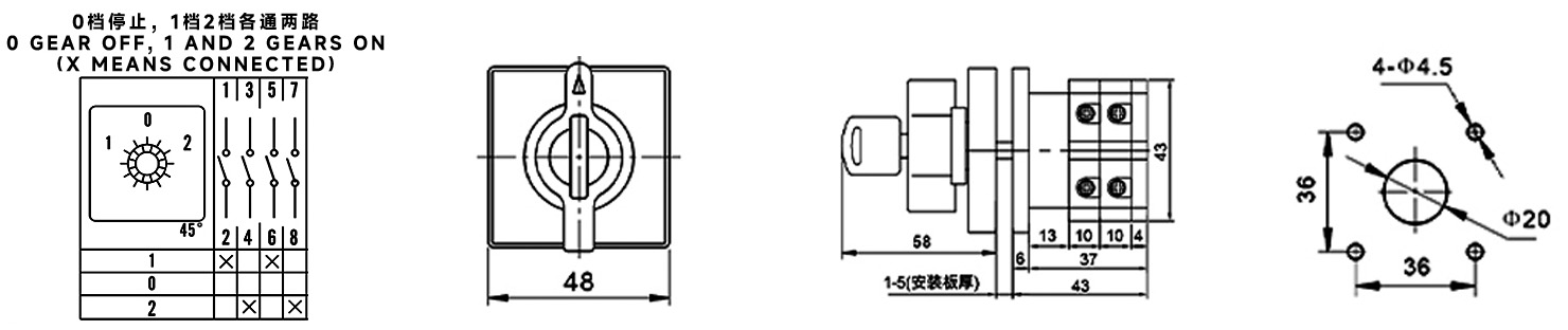 Hogar / Producto / Interruptor de cambio universal / Interruptor de cambio multifunción SZW26 / SZW26-20 D202.2Y-D11 Interruptor de cambio bloqueable unipolar de tres posiciones