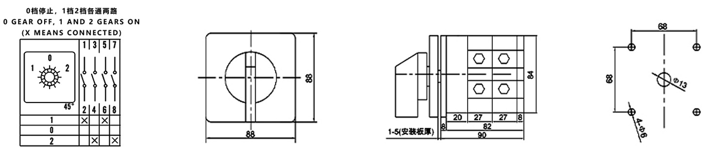 Hogar / Producto / Interruptor de cambio universal / Interruptor de cambio multifunción SZW26 / ZHUCO SZW26-125/D202.2 1-0-2 Interruptor de cambio de tres posiciones y dos secciones