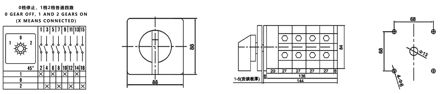 Hogar / Producto / Interruptor de cambio universal / Interruptor de cambio multifunción SZW26 / ZHUCO SZW26-125/D404.4 1-0-2 Interruptor de cambio de alta corriente de cuatro secciones y tres posiciones