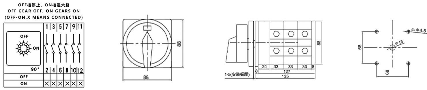 Hogar / Producto / Interruptor de cambio universal / Interruptor de cambio multifunción SZW26 / Interruptor aislador de potencia de alta corriente de tres secciones y dos posiciones OFF-ON ZHUCO SZW26-160/3GS