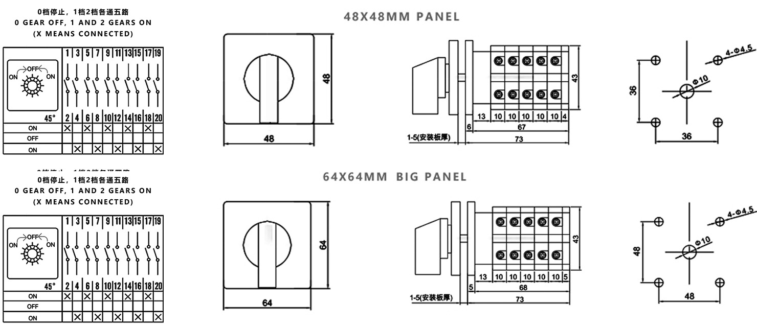 Hogar / Producto / Interruptor de cambio universal / Interruptor de cambio multifunción SZW26 / ZHUCO SZW26-20/B505.5 ENCENDIDO-APAGADO-ENCENDIDO Interruptor de conmutación de reinicio automático de cinco secciones y tres posiciones
