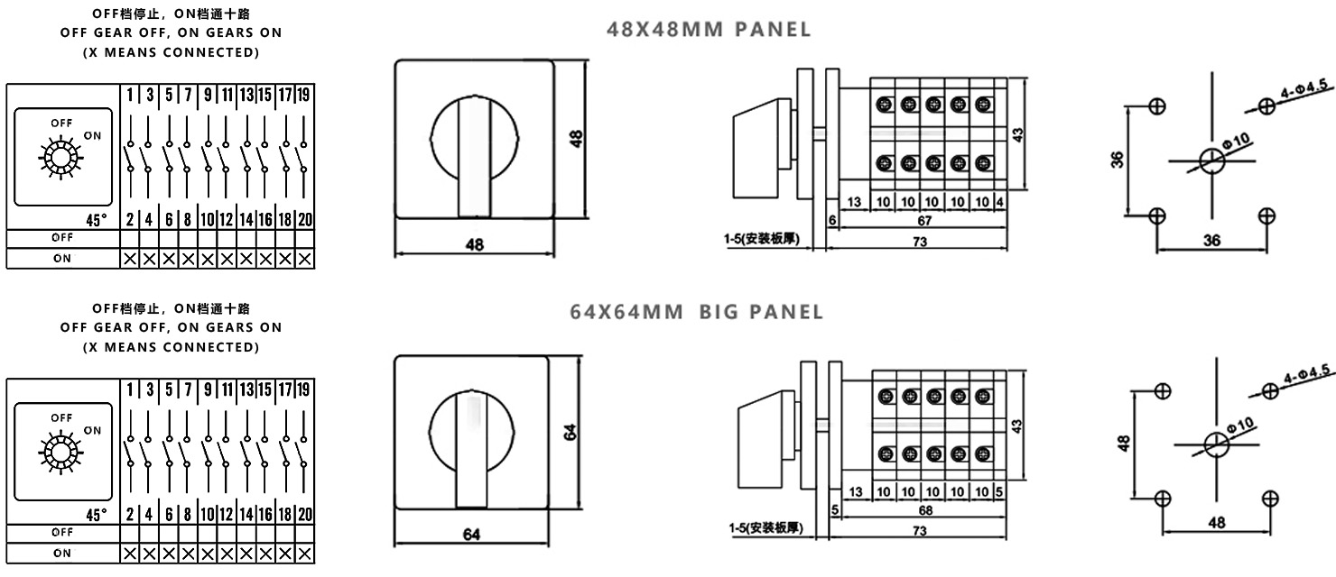 Hogar / Producto / Interruptor de cambio universal / Interruptor de cambio multifunción SZW26 / ZHUCO SZW26-20/COA.5 OFF-ON Interruptor de encendido/apagado de dos posiciones y cinco secciones