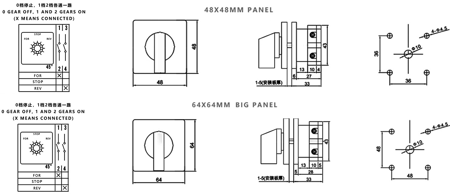 Hogar / Producto / Interruptor de cambio universal / Interruptor de cambio multifunción SZW26 / ZHUCO SZW26-20 D101.1 FOR-STOP-REV Interruptor de conmutación de tres posiciones y una sección