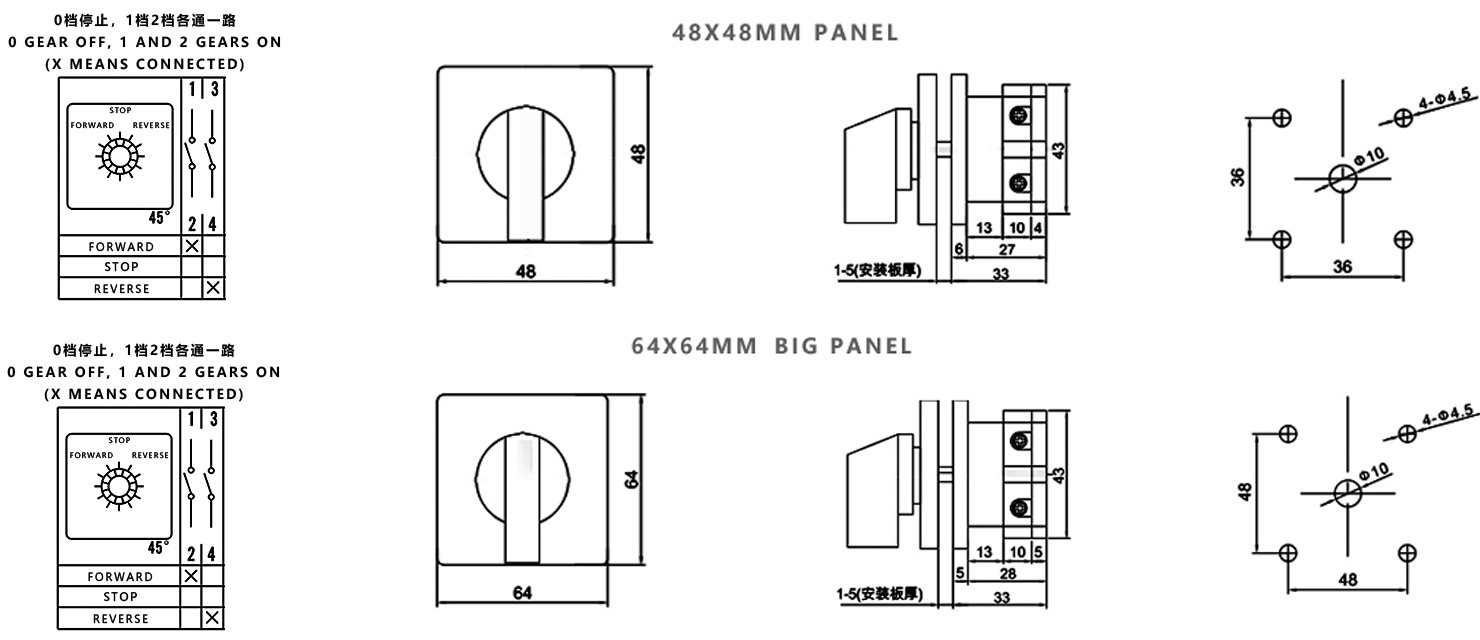Hogar / Producto / Interruptor de cambio universal / Interruptor de cambio multifunción SZW26 / ZHUCO SZW26-20/D101.1 AVANCE-PARADA-REVERSO Interruptor de cambio de una sección y tres posiciones