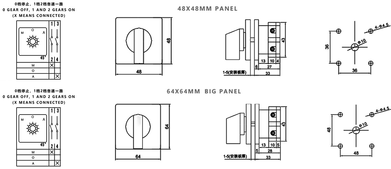 Hogar / Producto / Interruptor de cambio universal / Interruptor de cambio multifunción SZW26 / ZHUCO SZW26-20/D101.1 MOA Interruptor de cambio de tres posiciones y una sección