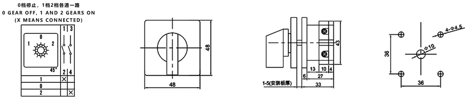 Hogar / Producto / Interruptor de cambio universal / Interruptor de cambio multifunción SZW26 / ZHUCO SZW26-20/D101.1 Panel plateado manija roja ON-OFF-ON Interruptor de cambio de sección única de tres posiciones