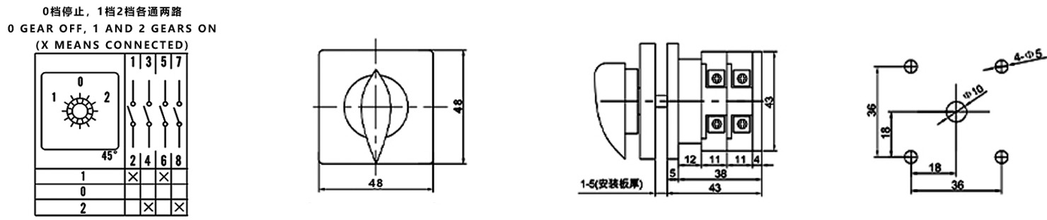 Hogar / Producto / Interruptor de cambio universal / Interruptor de cambio multifunción SZW26 / ZHUCO SZW26-20/D202.2 Panel amarillo manija roja 1-0-2 interruptor de cambio de dos secciones y tres posiciones