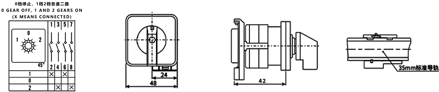 Hogar / Producto / Interruptor de cambio universal / Interruptor de cambio multifunción SZW26 / ZHUCO SZW26-20 D202.2-B11R Interruptor de cambio de montaje de riel DIN de dos secciones y tres posiciones