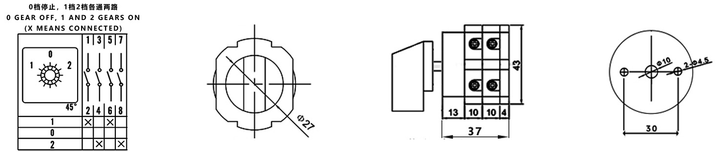 Hogar / Producto / Interruptor de cambio universal / Interruptor de cambio multifunción SZW26 / ZHUCO SZW26-20/D202.2OM 1-0-2 Interruptor de cambio de montaje doble de dos secciones y tres posiciones