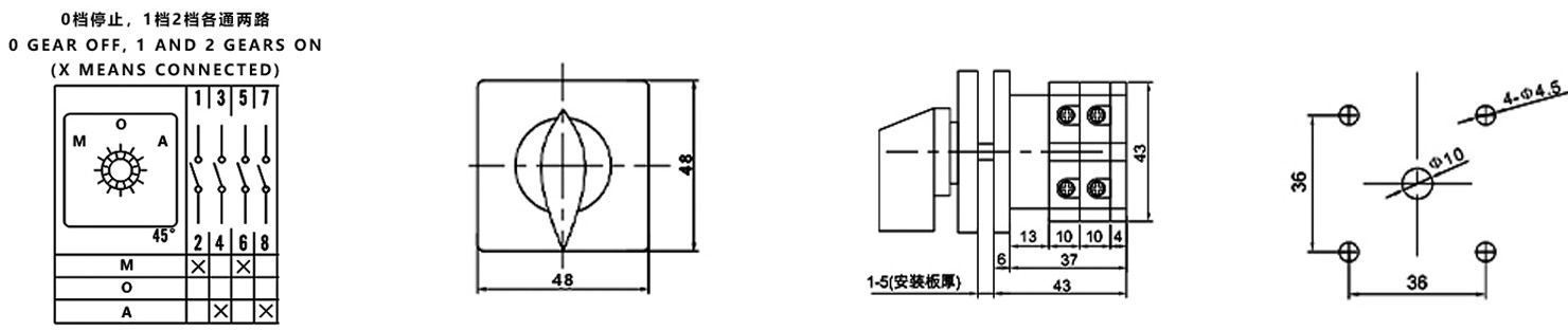 Hogar / Producto / Interruptor de cambio universal / Interruptor de cambio multifunción SZW26 / ZHUCO SZW26-20D/202.2 Manija roja con panel plateado 1-0-2 Interruptor de cambio de dos secciones y tres posiciones