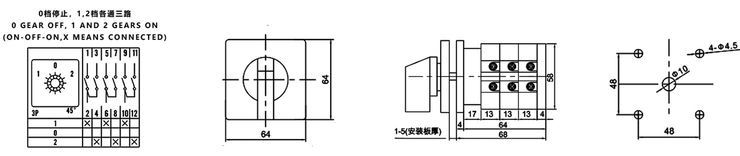 Hogar / Producto / Interruptor de cambio universal / Interruptor de cambio multifunción SZW26 / ZHUCO SZW26-32 D303.3 1-0-2 Interruptor de cambio de tres posiciones y tres secciones