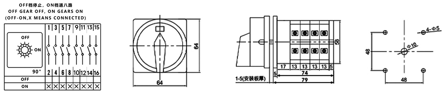Hogar / Producto / Interruptor de cambio universal / Interruptor de cambio multifunción SZW26 / ZHUCO SZW26-324GS APAGADO ENCENDIDO Interruptor de potencia de cuatro secciones y dos posiciones